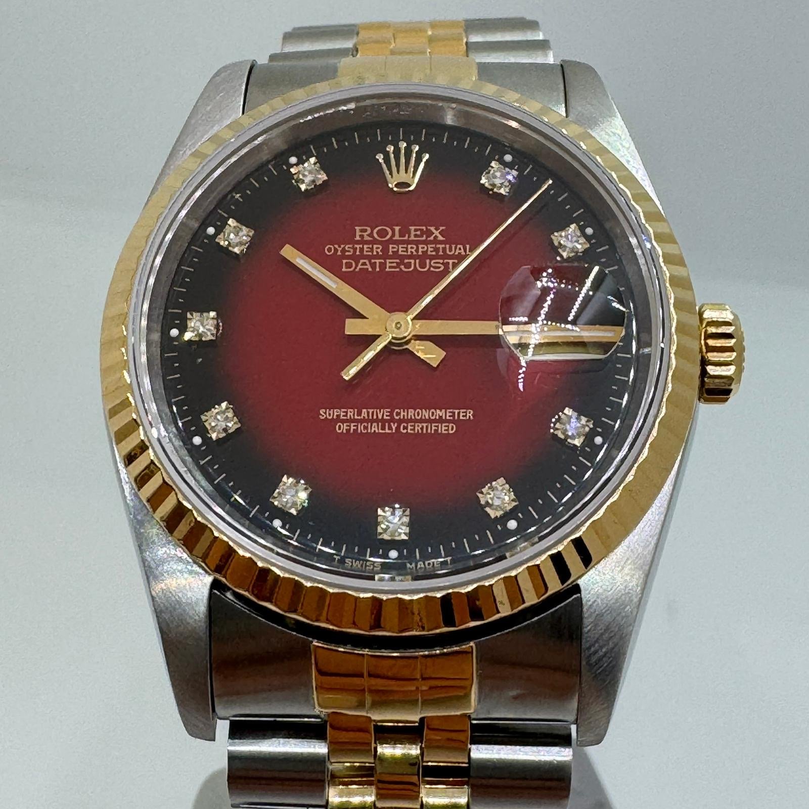ESPECTACULAR ROLEX DATEJUST 16233 VIGNETTE RED DIAMOND DIAL FULL SET AÑO 1991,UN AÑO DE GARANTIA TIMEGOLF SOBRE LA MAQUINARIA.