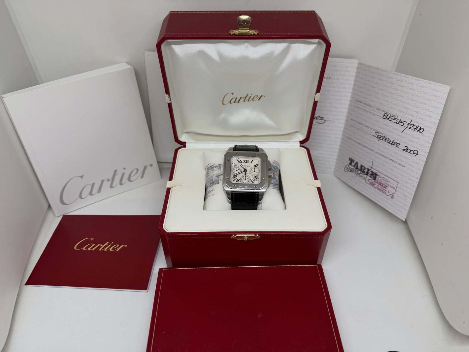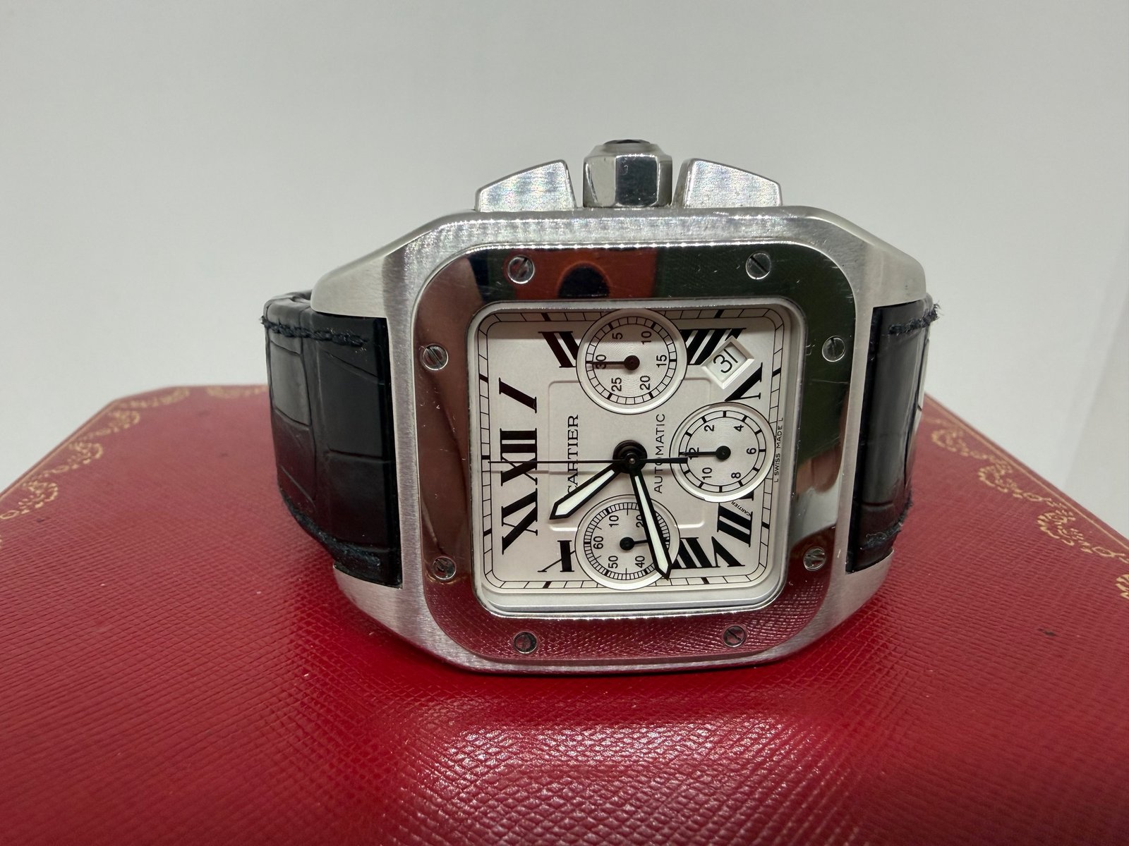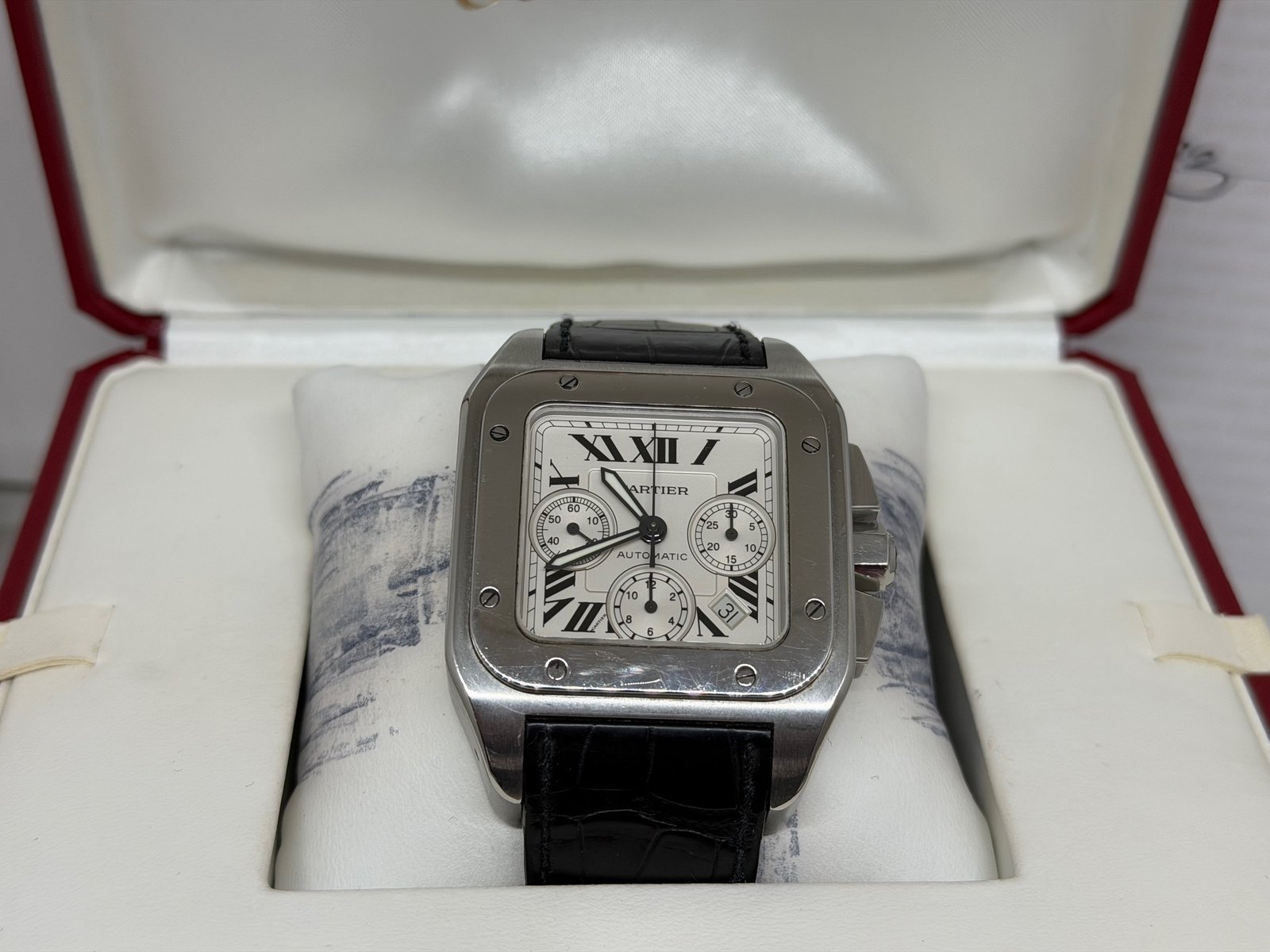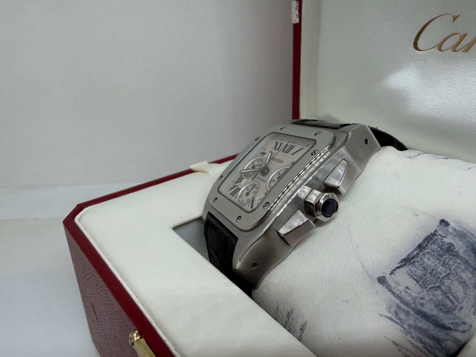 CARTIER SANTOS 100 CHRONOGRAPH FULL SET AÑO 2009,UN AÑO DE GARANTIA TIMEGOLF SOBRE LA MAQUINARIA.